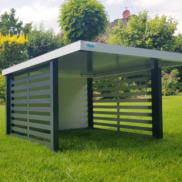 - Schutz des Mähroboters gegen Witterungseinflüsse während der Aufladephasen und permanenter Schutz der Ladestation gegen Witterung